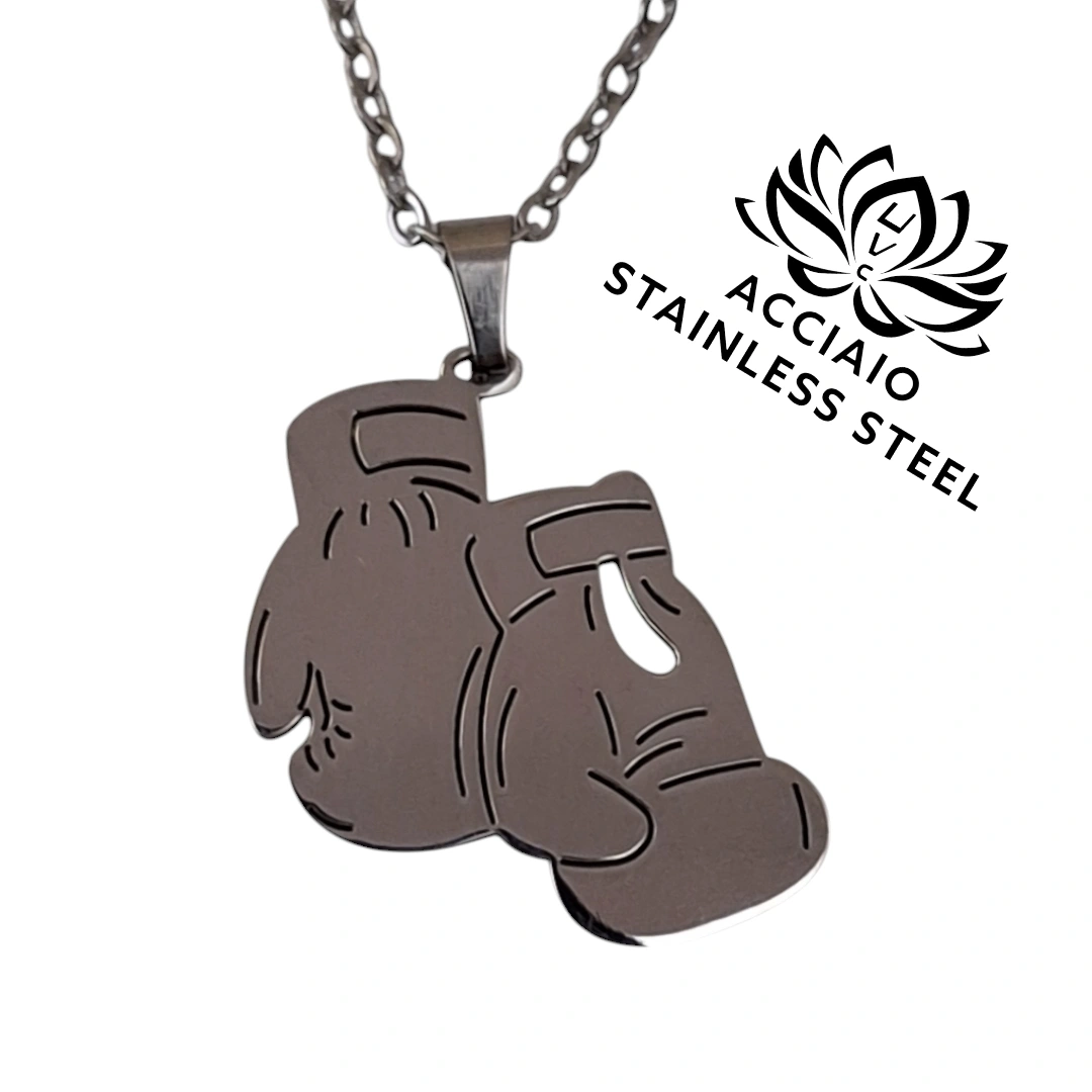 Collana in acciaio, lunga 40cm più 5cm di allungamento con ciondolo Guantoni H 26 x L 23 mm