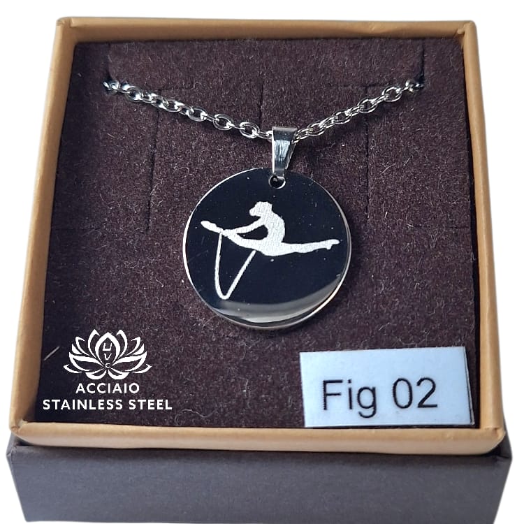 Scopri la collana con incisione della ginnasta con il Fune FIG 06 in acciaio inossidabile: un accessorio trendy e resistente, perfetto per chi ama lo sport e vuole aggiungere un tocco di stile al proprio look. Indossala in palestra o nella vita di tutti i giorni!