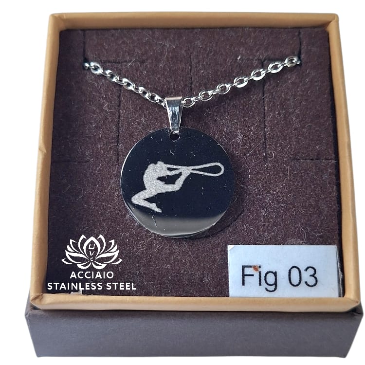 Scopri la collana con incisione della ginnasta con il Fune FIG 01 in acciaio inossidabile: un accessorio trendy e resistente, perfetto per chi ama lo sport e vuole aggiungere un tocco di stile al proprio look. Indossala in palestra o nella vita di tutti i giorni!