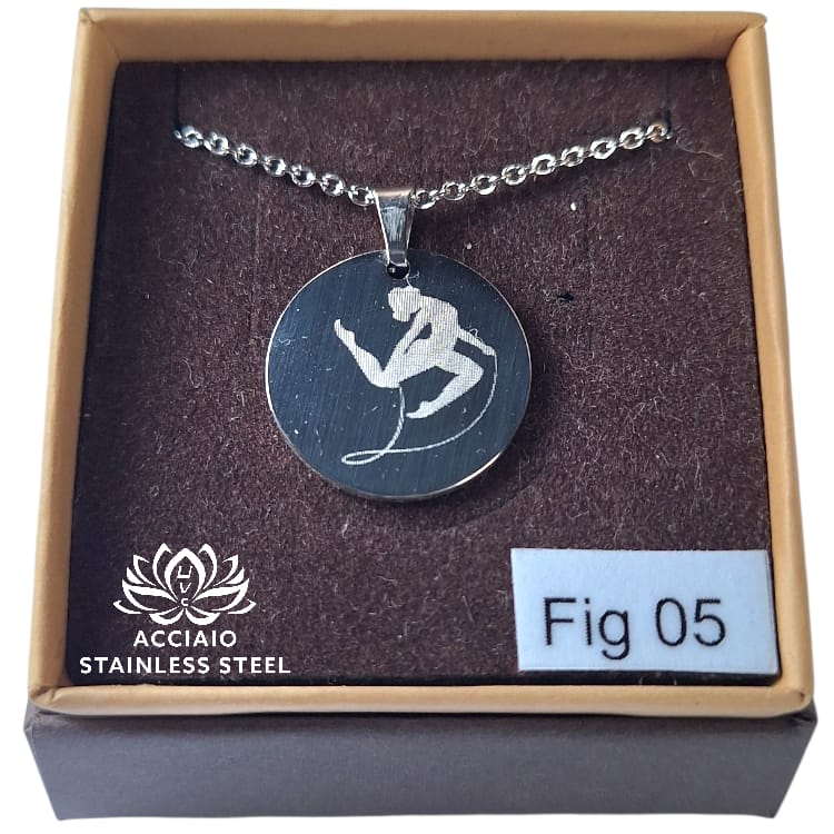 Scopri la collana con incisione della ginnasta con il Fune FIG 05 in acciaio inossidabile: un accessorio trendy e resistente, perfetto per chi ama lo sport e vuole aggiungere un tocco di stile al proprio look. Indossala in palestra o nella vita di tutti i giorni!