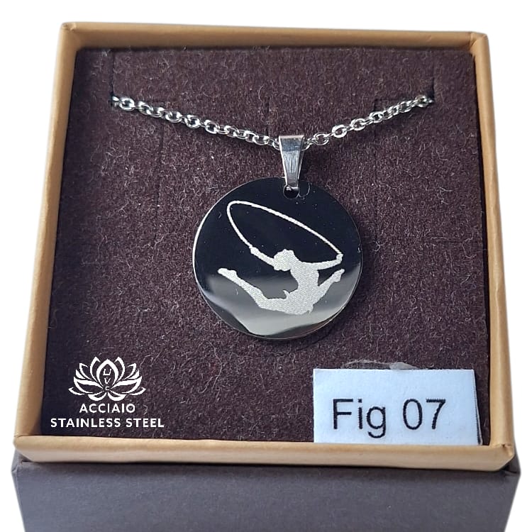 Scopri la collana con incisione della ginnasta con il Fune FIG 07 in acciaio inossidabile: un accessorio trendy e resistente, perfetto per chi ama lo sport e vuole aggiungere un tocco di stile al proprio look. Indossala in palestra o nella vita di tutti i giorni!