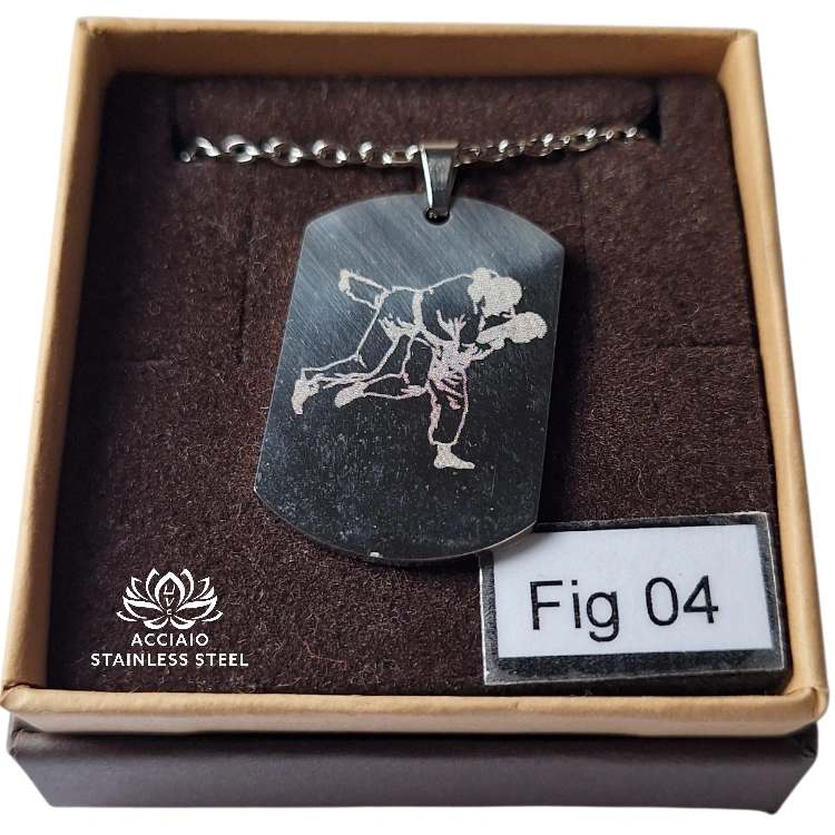Scopri la straordinaria magia della nostra collana in acciaio anallergico con la fig 04, un gioiello esclusivo creato per celebrare la tua passione per il judo. Non è solo un accessorio, ma un vero e proprio tributo alla tua audace personalità e alla tua determinazione. Indossando questa collana, non solo esprimi il tuo amore per lo sport, ma trasmetti anche un potente messaggio di forza e resilienza. Fai brillare con orgoglio questo simbolo che rappresenta il tuo impegno e la tua dedizione, lasciandoti avvolgere dalla sua energia magnetica e dal design unico. Con un ciondolo di 3x2 cm, cattura sicuramente gli sguardi, mentre la collana, lunga 40 cm con un pratico allungamento di 5 cm, si adatta perfettamente al tuo stile e alla tua essenza. Scegli di indossare un pezzo che racconta la tua storia e il tuo percorso nel mondo del judo!