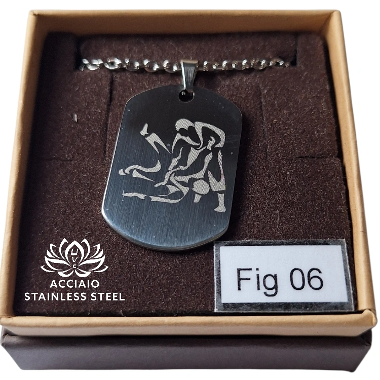 Scopri la straordinaria bellezza della nostra collana in acciaio anallergico con la fig 06, un gioiello esclusivo pensato per onorare la tua passione per il judo. Non si tratta solo di un accessorio, ma di un vero e proprio tributo alla tua personalità e alla tua determinazione. Indossandola, fai risaltare il tuo amore per lo sport e trasmetti un potente messaggio di forza. Lascia che questo simbolo del tuo impegno brilli, avvolto dalla sua energia e dal design unico. Con un ciondolo di 3x2 cm e una lunghezza di 40 cm, estensibile di 5 cm, si adatta perfettamente al tuo stile. Indossa un pezzo che racconta la tua storia nel judo e risplendi con orgoglio!