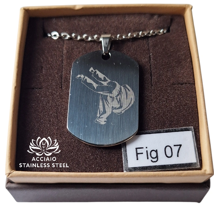 Scopri la straordinaria bellezza della nostra collana in acciaio anallergico con la fig 07, un gioiello esclusivo pensato per celebrare la tua passione per il judo. Non è solo un accessorio, ma un vero e proprio tributo alla tua personalità e alla tua determinazione. Indossandola, metti in risalto il tuo amore per lo sport e trasmetti un potente messaggio di forza. Lascia che questo simbolo del tuo impegno brilli, avvolto dalla sua energia e dal design unico. Con un ciondolo di 3x2 cm e una lunghezza di 40 cm, estensibile di 5 cm, si adatta perfettamente al tuo stile. Indossa un pezzo che racconta la tua storia nel judo e risplendi con orgoglio!