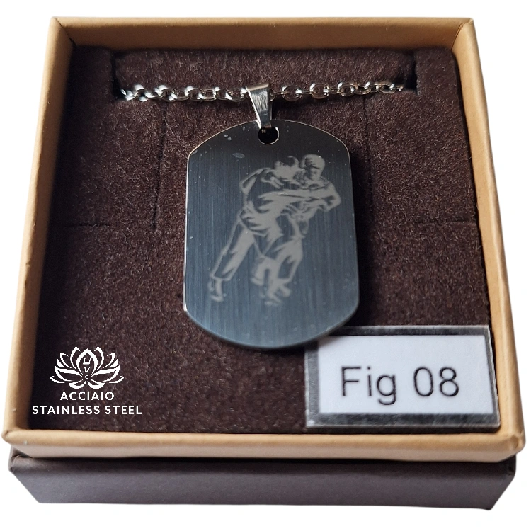 Scopri la straordinaria bellezza della nostra collana in acciaio anallergico con la fig 08, un gioiello esclusivo creato per celebrare la tua passione per il judo. Non è solo un accessorio, ma un autentico tributo alla tua personalità e alla tua determinazione. Indossandola, metti in risalto il tuo amore per lo sport e trasmetti un potente messaggio di forza. Lascia che questo simbolo del tuo impegno brilli, avvolto dalla sua energia e dal design unico. Con un ciondolo di 3x2 cm e una lunghezza di 40 cm, estensibile di 5 cm, si adatta perfettamente al tuo stile. Indossa un pezzo che racconta la tua storia nel judo e risplendi con orgoglio!