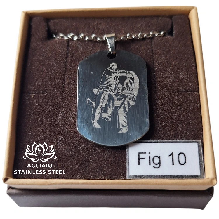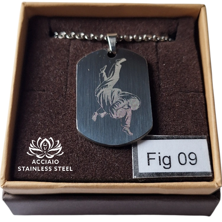 Scopri la bellezza della nostra collana in acciaio anallergico con la fig 09, un gioiello creato per celebrare la tua passione per il judo. Non è solo un accessorio, ma un vero tributo alla tua personalità e determinazione. Indossandola, mostri il tuo amore per lo sport e un messaggio di forza. Lascia che questo simbolo del tuo impegno brilli con il suo design unico. Con un ciondolo di 3x2 cm e una lunghezza di 40 cm, estensibile di 5 cm, si adatta perfettamente al tuo stile. Indossa un pezzo che racconta la tua storia nel judo e risplendi con orgoglio!