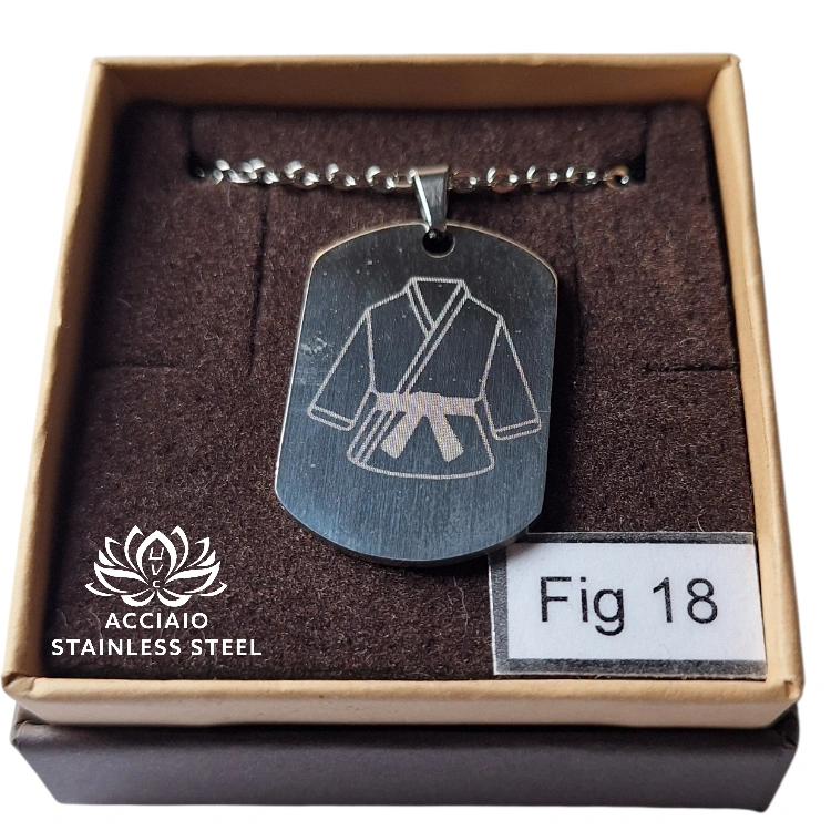 Scopri la straordinaria bellezza della nostra collana in acciaio anallergico con la fig 19, un gioiello creato per celebrare la tua passione per il judo! Non è solo un accessorio, ma un autentico tributo alla tua personalità e determinazione. Indossandola, non solo mostri il tuo amore per questo sport, ma trasmetti un messaggio potente di forza e resilienza. Lascia che questo simbolo del tuo impegno brilli con il suo design esclusivo. Con un ciondolo di 3x2 cm e una lunghezza di 40 cm, estensibile di 5 cm, si adatta perfettamente al tuo stile unico. Indossa un pezzo che racconta la tua storia nel judo e risplendi di orgoglio!