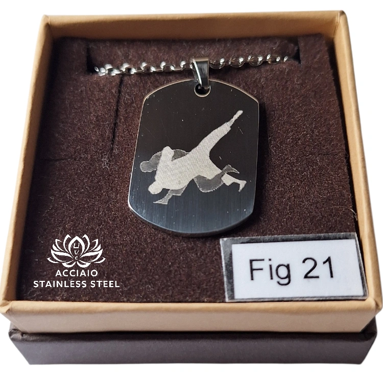 Scopri la straordinaria bellezza della nostra collana in acciaio anallergico con la fig 21, un gioiello che celebra con passione il tuo amore per il judo! Non si tratta solo di un accessorio, ma di un autentico tributo alla tua personalità e alla tua determinazione. Indossandola, non solo esprimi la tua dedizione per questo sport, ma trasmetti anche un messaggio potente di forza e resilienza. Lascia che questo simbolo del tuo impegno si faccia notare grazie al suo design esclusivo. Con un ciondolo di 3x2 cm e una lunghezza di 40 cm, estensibile di 5 cm, si adatta perfettamente al tuo stile unico. Indossa un pezzo che racconta la tua storia nel judo e brilla di orgoglio!