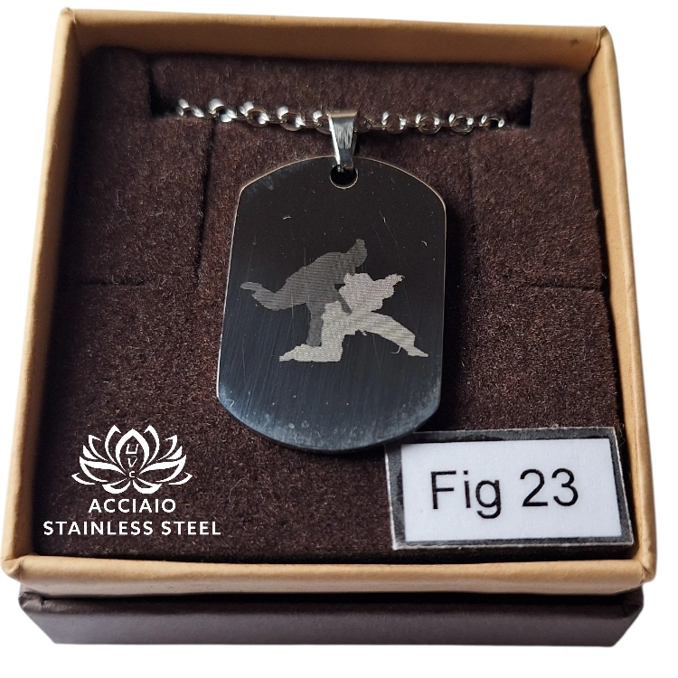 Scopri la straordinaria bellezza della nostra collana in acciaio anallergico con la fig 24, un gioiello che celebra con passione il tuo amore per il judo! Non si tratta solo di un accessorio, ma di un vero e proprio tributo alla tua personalità e alla tua determinazione. Indossandola, non solo dimostri la tua dedizione a questo sport, ma trasmetti anche un messaggio potente di forza e resilienza. Lascia che questo simbolo del tuo impegno brilli grazie al suo design esclusivo. Con un ciondolo di 3x2 cm e una lunghezza di 40 cm, estensibile di 5 cm, si adatta perfettamente al tuo stile unico. Indossa un pezzo che racconta la tua storia nel judo e risplendi con orgoglio!