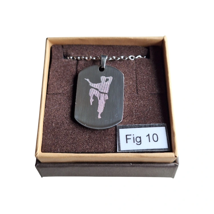Scopri la Collana KARATE FIG 10 in acciaio inossidabile, un accessorio perfetto per chi ama il karate e vuole mostrare la propria passione con stile. Leggera e resistente, è ideale per ogni occasione, dal training alle uscite con gli amici. Fatti notare con un tocco di eleganza!