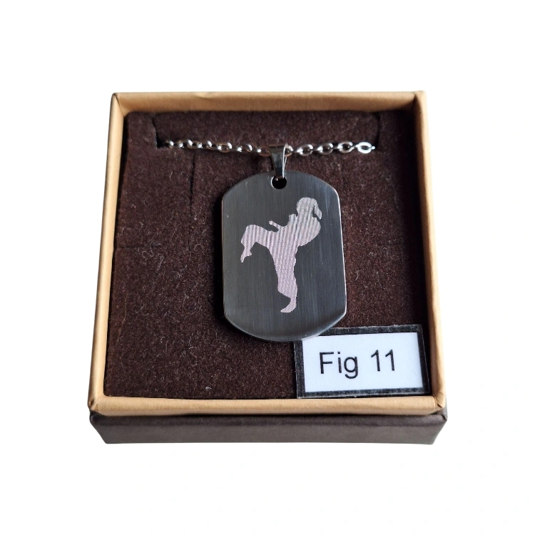 Scopri la Collana KARATE FIG 11 in acciaio inossidabile, un accessorio perfetto per chi ama il karate e vuole mostrare la propria passione con stile. Leggera e resistente, è ideale per ogni occasione, dal training alle uscite con gli amici. Fatti notare con un tocco di eleganza!