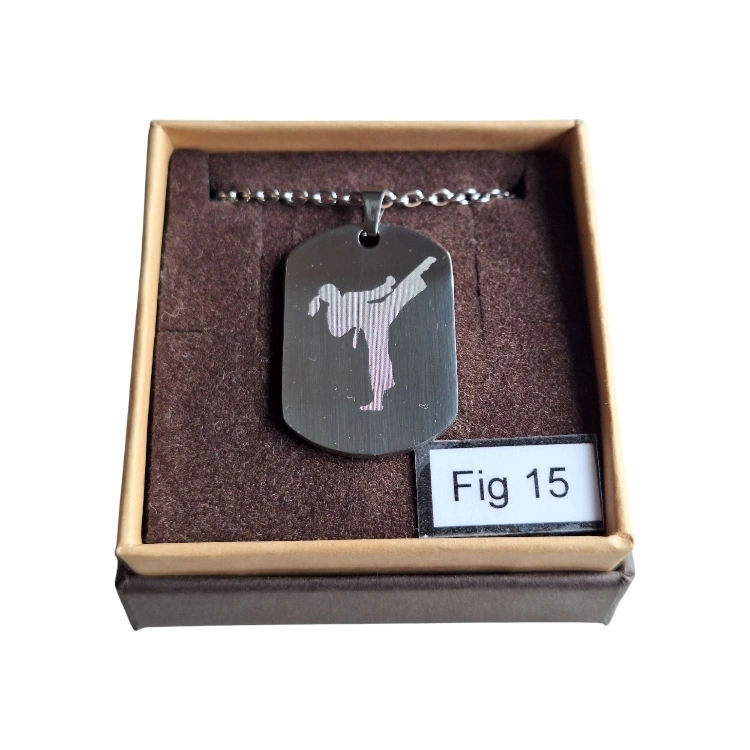 Scopri la Collana KARATE FIG 15 in acciaio inossidabile, un accessorio perfetto per chi ama il karate e vuole mostrare la propria passione con stile. Leggera e resistente, è ideale per ogni occasione, dal training alle uscite con gli amici. Fatti notare con un tocco di eleganza!