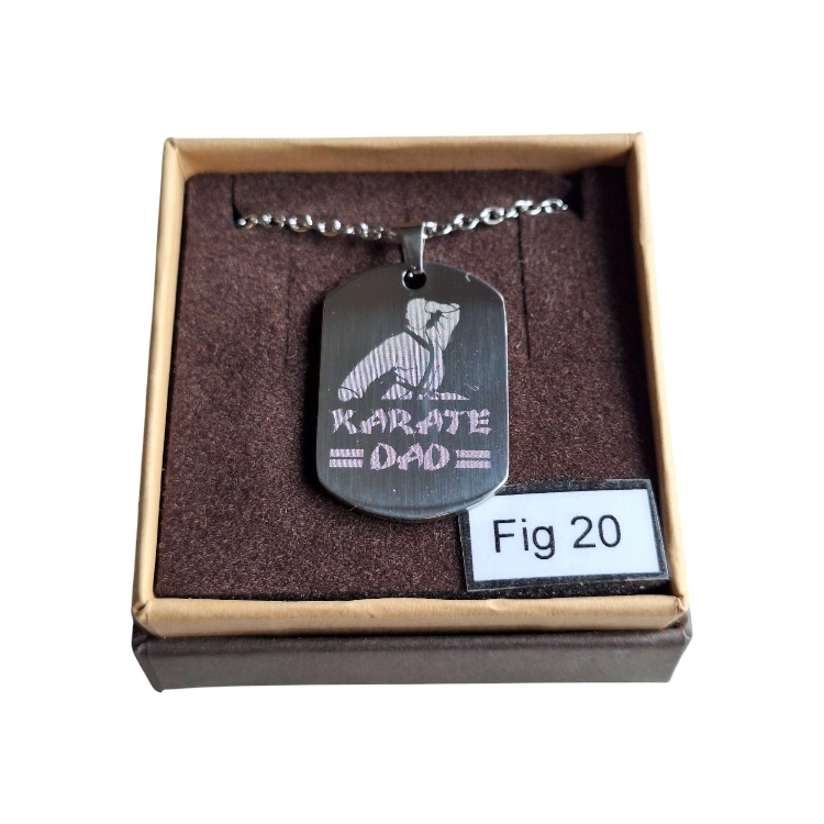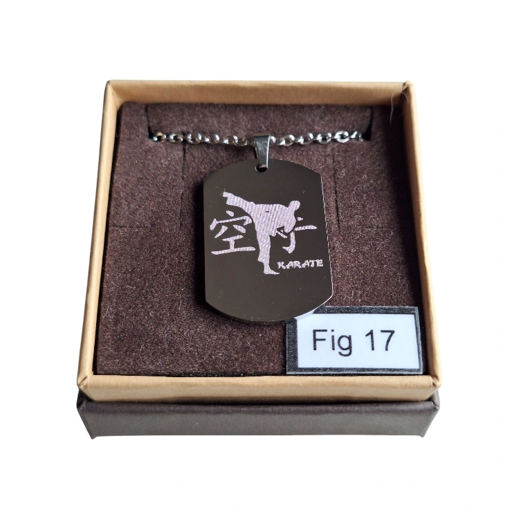 Scopri la Collana KARATE FIG 20 in acciaio inossidabile, un accessorio perfetto per chi ama il karate e vuole mostrare la propria passione con stile. Leggera e resistente, è ideale per ogni occasione, dal training alle uscite con gli amici. Fatti notare con un tocco di eleganza!