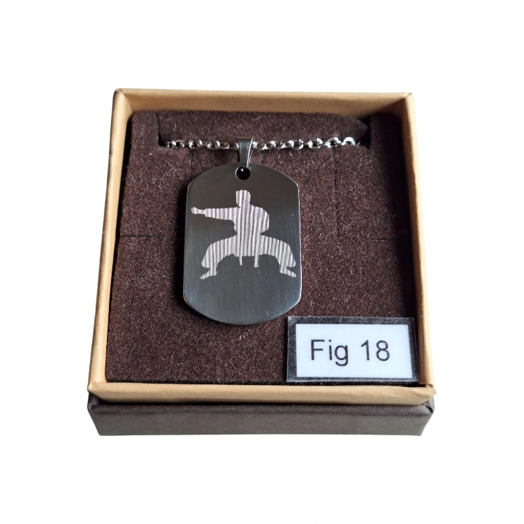 Scopri la Collana KARATE FIG 18 in acciaio inossidabile, un accessorio perfetto per chi ama il karate e vuole mostrare la propria passione con stile. Leggera e resistente, è ideale per ogni occasione, dal training alle uscite con gli amici. Fatti notare con un tocco di eleganza!