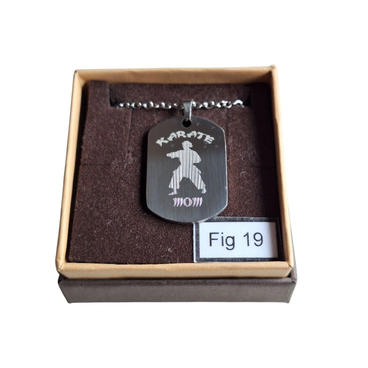 Scopri la Collana KARATE FIG 19 in acciaio inossidabile, un accessorio perfetto per chi ama il karate e vuole mostrare la propria passione con stile. Leggera e resistente, è ideale per ogni occasione, dal training alle uscite con gli amici. Fatti notare con un tocco di eleganza!