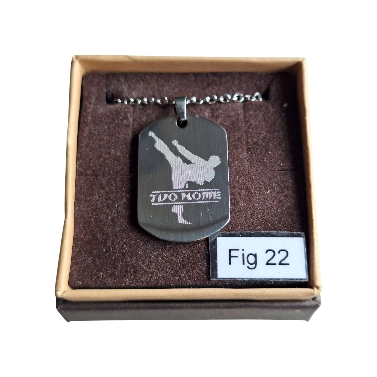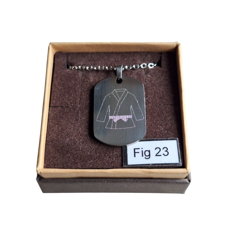 Scopri la Collana KARATE FIG 23 in acciaio inossidabile, un accessorio perfetto per chi ama il karate e vuole mostrare la propria passione con stile. Leggera e resistente, è ideale per ogni occasione, dal training alle uscite con gli amici. Fatti notare con un tocco di eleganza!