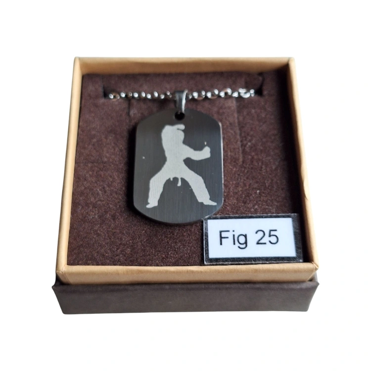 Scopri la Collana KARATE FIG 25 in acciaio inossidabile, un accessorio perfetto per chi ama il karate e vuole mostrare la propria passione con stile. Leggera e resistente, è ideale per ogni occasione, dal training alle uscite con gli amici. Fatti notare con un tocco di eleganza!