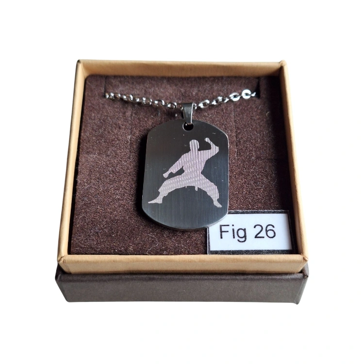 Scopri la Collana KARATE FIG 26 in acciaio inossidabile, un accessorio perfetto per chi ama il karate e vuole mostrare la propria passione con stile. Leggera e resistente, è ideale per ogni occasione, dal training alle uscite con gli amici. Fatti notare con un tocco di eleganza!