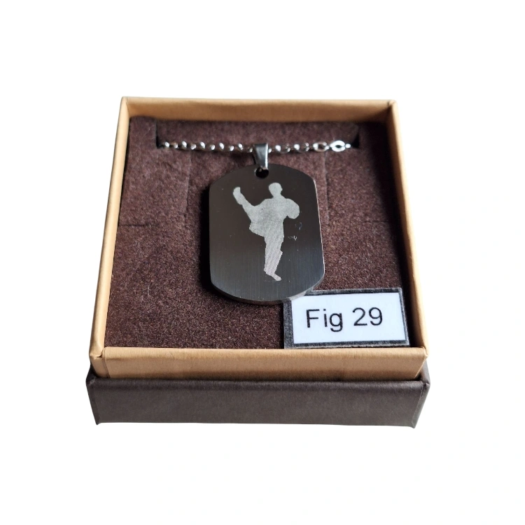Scopri la Collana KARATE FIG 29 in acciaio inossidabile, un accessorio perfetto per chi ama il karate e vuole mostrare la propria passione con stile. Leggera e resistente, è ideale per ogni occasione, dal training alle uscite con gli amici. Fatti notare con un tocco di eleganza!
