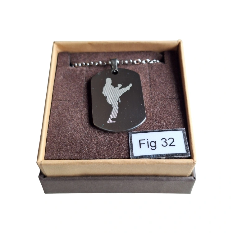 Scopri la Collana KARATE FIG 32 in acciaio inossidabile, un accessorio perfetto per chi ama il karate e vuole mostrare la propria passione con stile. Leggera e resistente, è ideale per ogni occasione, dal training alle uscite con gli amici. Fatti notare con un tocco di eleganza!