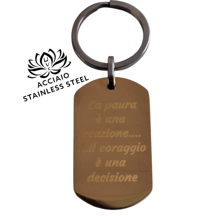 Portachiave in Acciaio con Frase Motivazionale – “La paura è una reazione, il coraggio è una decisione” | Karate e Arti Marziali