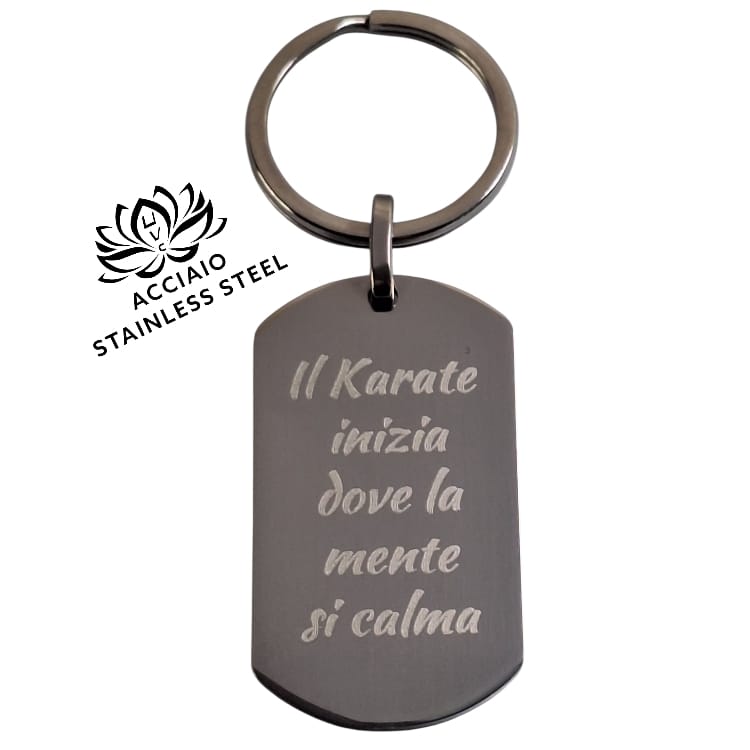 🔥 Portachiavi Karate in Acciaio – Frase Motivazionale “Il karate inizia dove la mente si calma” | Accessorio per Giovani Karateka | Regalo Ispirante per Allievi