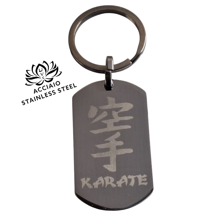 Porta con te lo spirito del karate ovunque tu vada! Realizzato in acciaio inossidabile di alta qualità, questo portachiavi è inciso al diamante con il carattere idioma "Karate" e un design deciso e raffinato. Resistente, elegante e grintoso come un vero combattente — perfetto per atleti, sensei e fan delle arti marziali.